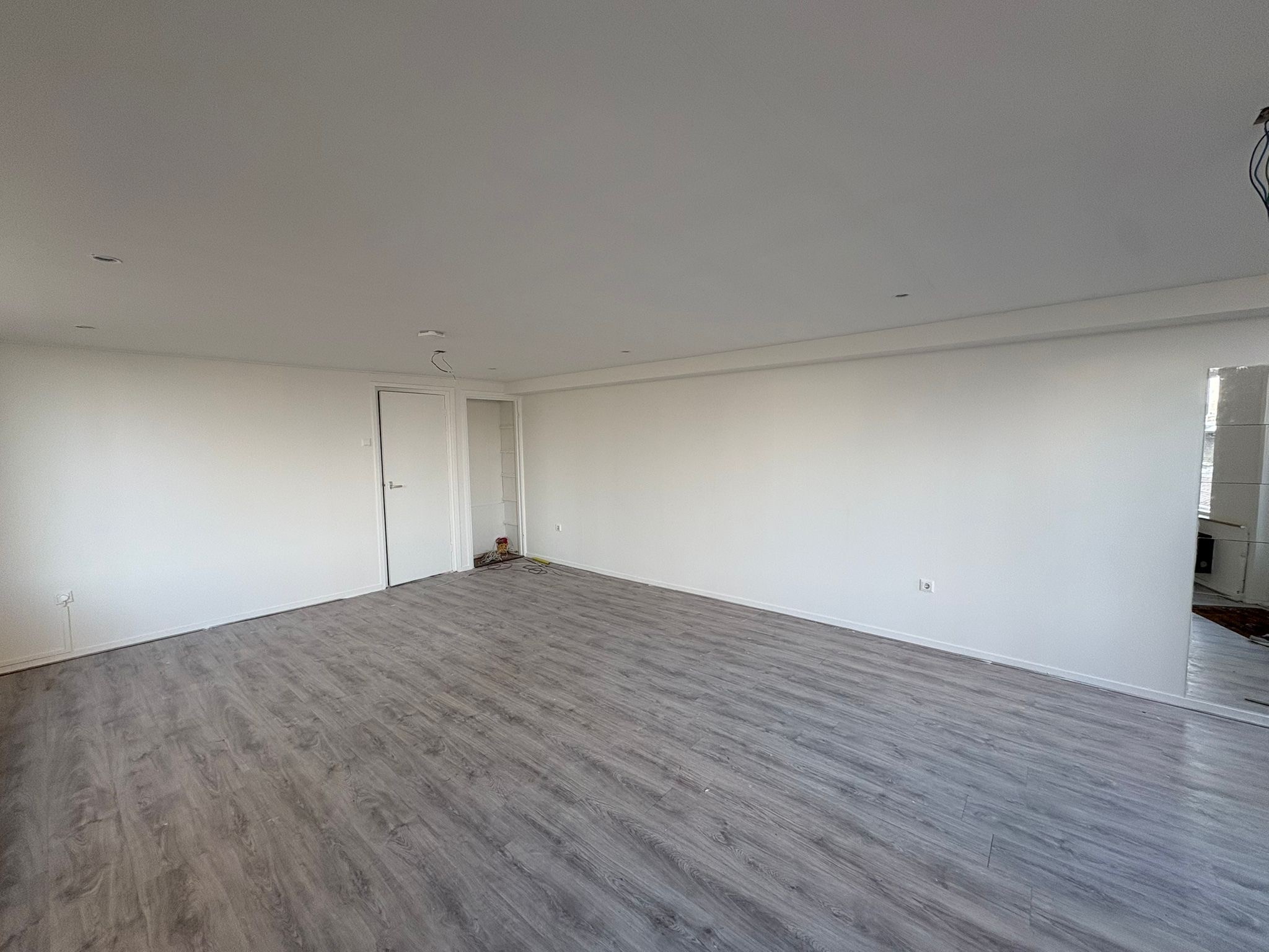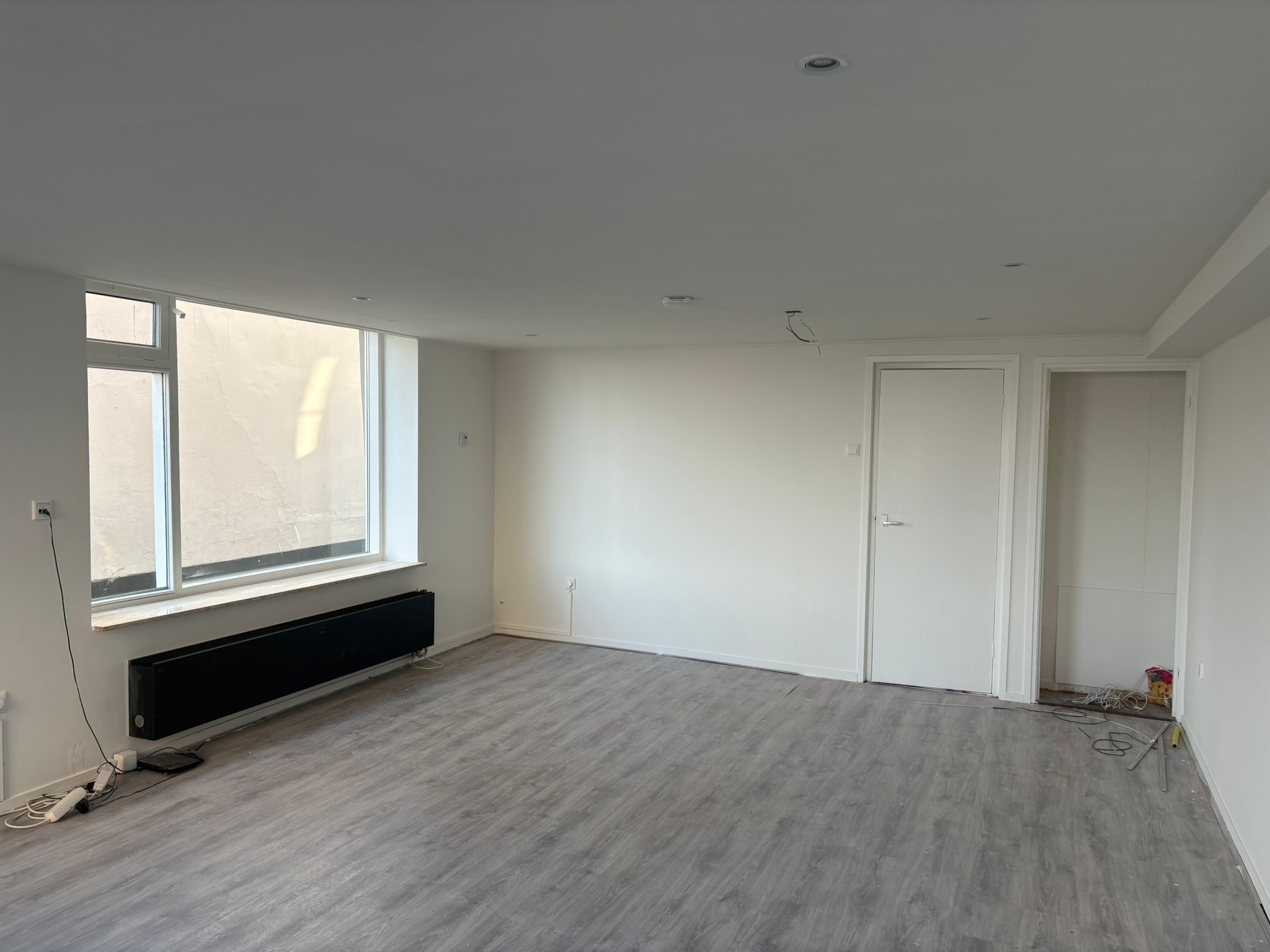 De ruimte heeft veel lichtinval door de vele ramen.